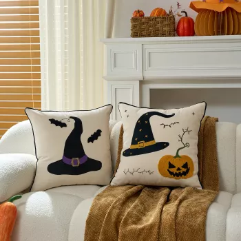 Halloween Embroidered Cushion Cover 18×18 – Pumpkin & Ghost Design